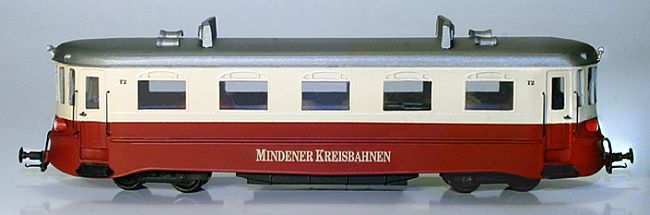 Als die "Spitzmäuse" Typ IVs der DWK kantig wurden, vererbten sie ihre Gene an den Typ IV "Kommißbrot"; vorher hatten sie sich mit 33 gebauten benzolgetriebenen Einheiten zum Verkaufs- und Exportschlager entwickelt. Die installierte Leistung von 90 PS genügte für normal- oder schmalspurige Flachland-Strecken. PANIER liefert in H0, H0e und H0m, als Bausatz oder fertig - museal erhalten blieb leider keine Spitzmaus...
