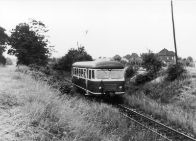 Rechts: Kaum zu glauben – der „Flensburger“, der 1957 bei den RLK auf der Strecke ausbrannte, erhielt einen neuen Aufbau mit nach damaligem Empfinden zeitgemäßen Formen und legte bis zum Ende des Personenverkehrs auf den Schmalspurstrecken der RLK 1964 noch etliche tausend Kilometer zurück – ein schlagender Beweis für die Robustheit und Praxistauglichkeit der AEG-Konstruktion. Der neue Aufbau des Triebwagens erlebte, vom Fahrgestell getrennt, ebenfalls noch eine zweite Karriere: Er diente noch jahrelang als Hühnerstall irgendwo bei Welver... | ![]() |