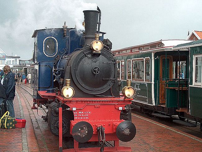 Sie vermuten richtig: Nicht die fast 75 Jahre alte Borkum''', die als Dollart an die Borkumer Kleinbahn geliefert wurde und seit ihrer Reanimation 1997 - vorher stand sie bereits auf einem Denkmalsockel - im Regeldienst auf Borkum läuft, sondern die deutlich älteren Original-Weyer-Wagen mit ihren detailverliebt farblich betonten Deck- und Zierleisten stehen hier eigentlich im Fokus.