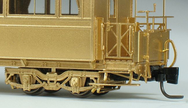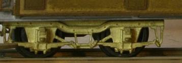 hat deswegen ein wenig Luft am Gehäuse). Links unten: Blick auf die Bühnenseite ohne Handbremse. Unten: Das Messingguss-Drehgestell aus der Nähe. Ganz unten: Blick auf die Bühne mit Handbremse. Noch ein paar Details ansetzen, Fenster vorbereiten, dann geht es in die Lackiererei und in die Endmontage... |