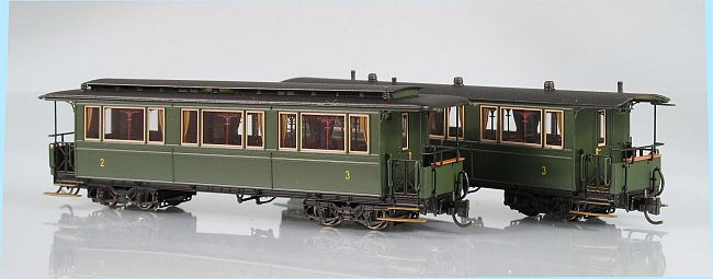 ![]() ![]() | Schon in dieser Größe sind die Weyer-Miniaturen in Nm von N-Tram eine Augenweide. Links: oben der 3.-Klasse-Wagen mit, darunter der 3.-Klasse-Wagen ohne Oberlichtaufbau. Rechts: oben der 2./3.-Klasse-Wagen mit, darunter der gleiche Wagentyp ohne Oberlichtaufbau. (Fotos [7]: N-Tram - danke für die Genehmigung zur Einbindung) | ![]() ![]() |