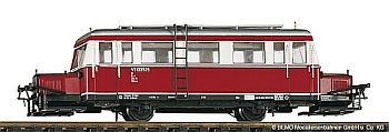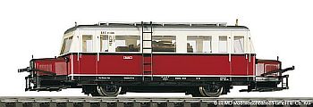 | Für die Freunde der Gartenbahn (IIm) hat(te) LGB natürlich auch den Wismarer im Programm. Mit beeindruckenden 445 mm Länge gibt das Modell sein Vorbild, den VT 133 525 der DR, im Zustand der Epoche III wieder. Ab Werk verfügt das Modell (22660) über Innenbeleuchtung, Türen zum Öffnen und hat einen MZS-Chip onboard. Aktuell (Juli 2013) ist das Modell „nicht mehr in Produktion“ (Info LGB). (Foto: LGB) | ![]() |
